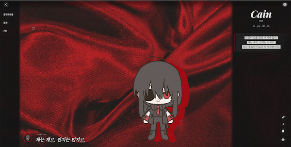 커뮤 뛸 때마다 지인분과 함께 백업해두기 위해(기억력이 정말 구려 매번 프로필을 어디써뒀는지 모르는 관계로ㅠㅜ) 구입한 캐릭터 게시판입니다! 일반 캐릭터 게시판도 물론 좋지만 인터랙션 캐릭터 스킨 디자인이 정말 취적이었어요... 서브컬쳐 모바일 게임 UI 같고 정말 아름답다고 생각합니다,,,ㅠㅜ 라공 에디터로 프로필 내용도 다채롭게 꾸밀 수 있고 무엇보다 탭을 나눌 수 있는게 최고! 설정과 외관을 일목요연하게 정리할 수 있다는 건... 정말 좋은 일입니다,,,