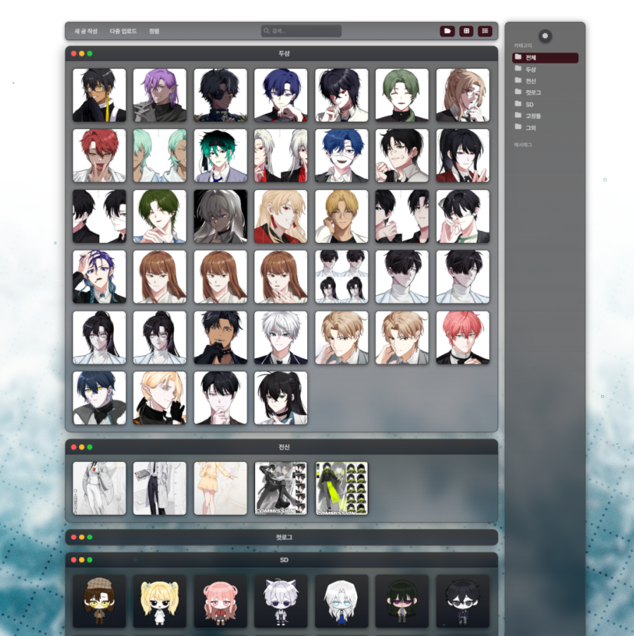 깔끔하게 나눠진 분류, 보일 수 있는 것만 보이고 기본적으로 접어둘 수 있는 보기 쉬운 것들. 누르면 자동으로 크게 볼 수 있는 간편함. 한 번에 업로드 가능 기능!
