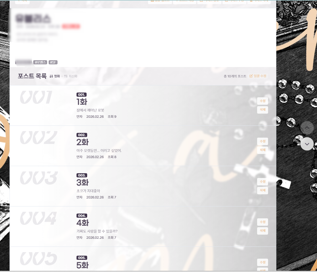 웹툰이나 웹소설처럼 정리할 수 있는, 시리즈 스킨입니다.