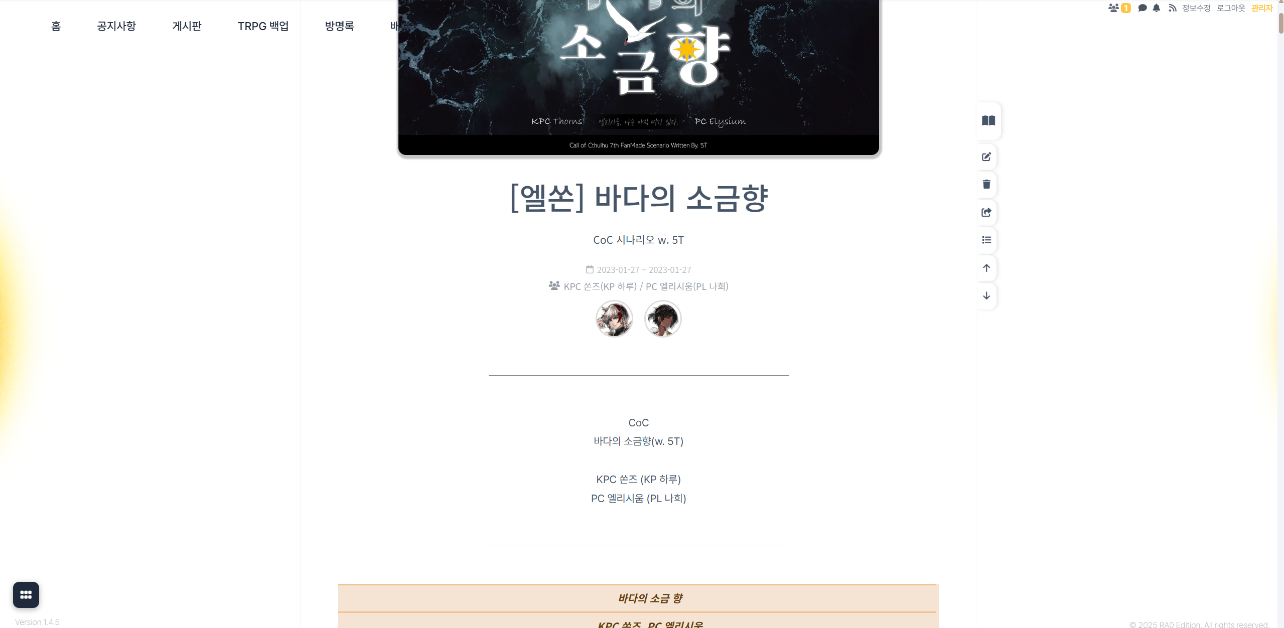 기존에는 티스토리를 이용해서 TRPG 백업을 했는데 요즘 여러 플랫폼들이 불안정해서 여러 모로 불안하던 차...